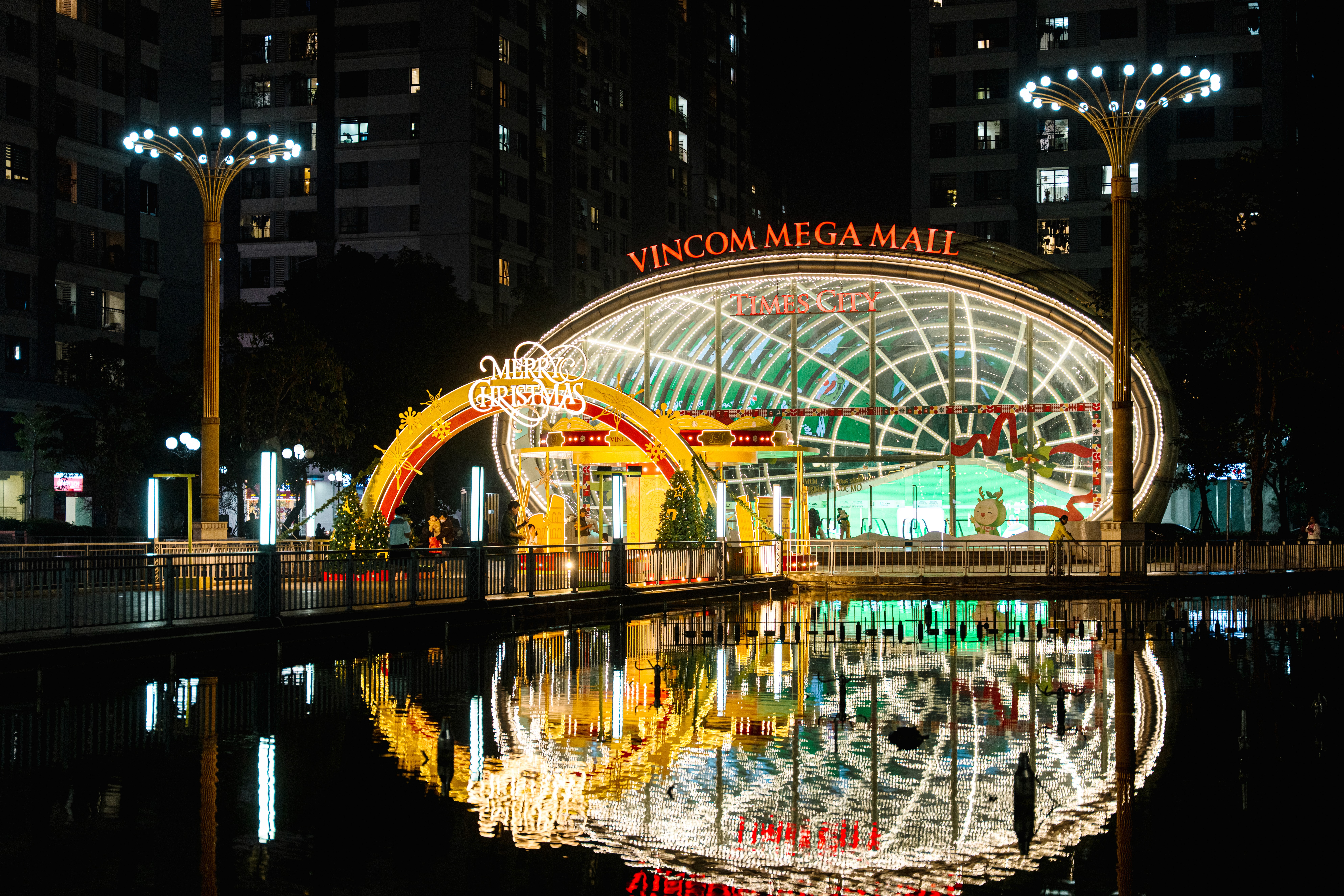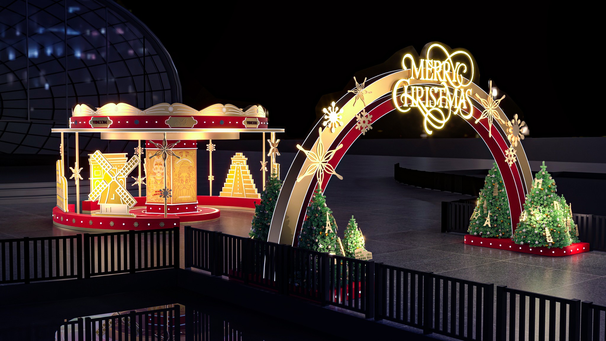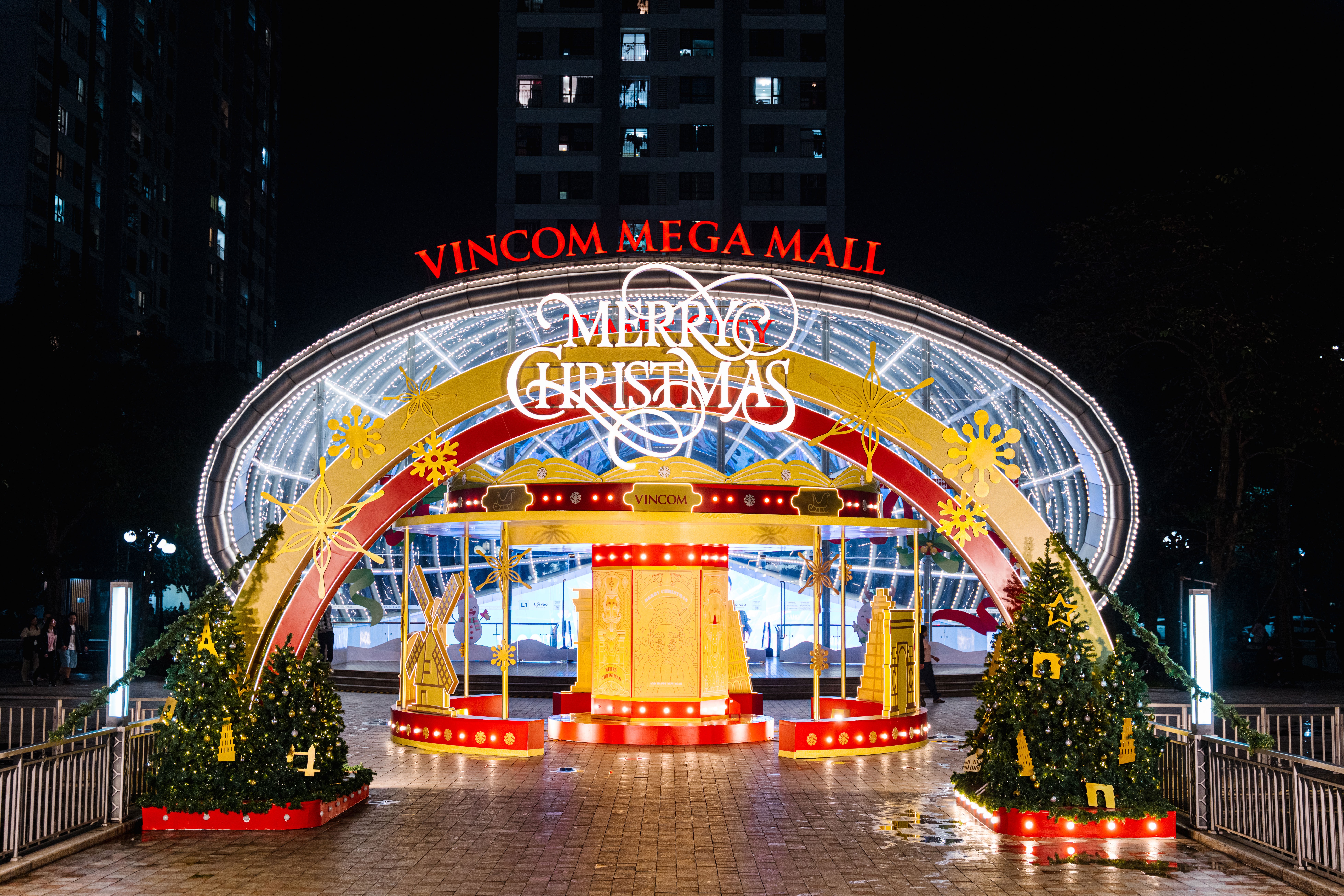 Vincom Christmas 2025 mang thông điệp “Bừng sáng ước mơ” – nơi mỗi trung tâm thương mại trở thành một điểm hẹn cảm xúc của mùa lễ hội. Với dự án tại Vincom Mega Mall Times City, Look tiếp cận bài toán thiết kế như một “điểm mở” cho toàn bộ mùa Giáng sinh trên hệ thống Vincom. Ý đồ sáng tạo được xây dựng xoay quanh khoảnh khắc bước qua một cánh cửa lễ hội – nơi người xem rời khỏi nhịp sống thường nhật để chạm vào không gian Giáng sinh ấm áp, rực rỡ và mang tinh thần hội nhập quốc tế. Cánh cửa ấy không mang hình thức đóng – mở cụ thể, mà được diễn giải bằng vòng cung lớn Merry Christmas, đóng vai trò như một dấu mốc thị giác, một điểm chuyển trạng thái cảm xúc ngay từ quảng trường trung tâm.